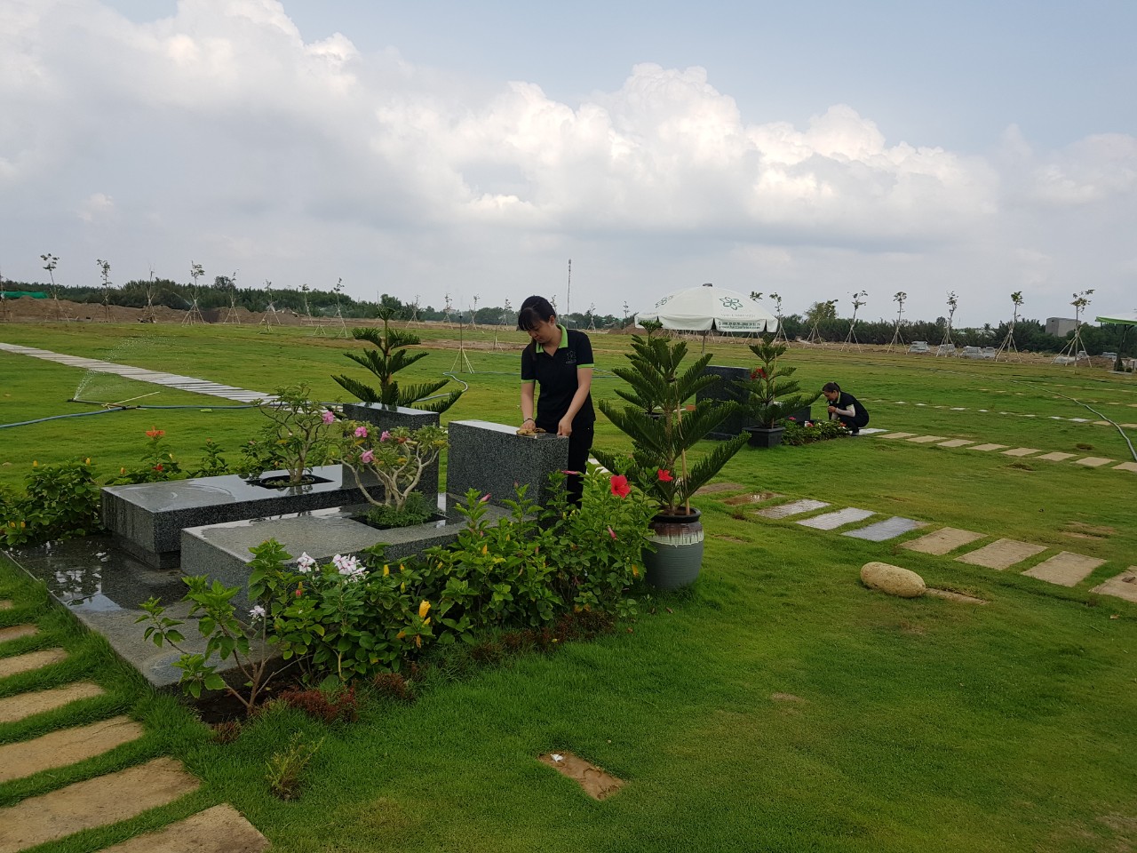 – Vệ sinh cây cỏ xung quanh và cắt tỉa cây cảnh trong khu mộ.